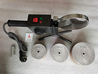 注:在工作狀態(tài)更換焊頭時,要注意安全。拆下焊頭應(yīng)妥善保管,不能損壞焊頭表面涂層,否則容易引起塑料粘結(jié),影響施工質(zhì)量,縮短焊頭壽命。 3、接通電源加熱指示燈(紅色)亮,將調(diào)節(jié)旋扭旋轉(zhuǎn)至管材管件材質(zhì)所需溫度刻度,待紅色指示燈滅,綠色指示燈亮,即可開始工作。(起控過程一般小于8分鐘)。 4、將待加溫施工的管子(斷面須切割垂直),管件同時推進(jìn)到焊頭內(nèi),并加熱數(shù)秒鐘,迅速拔出,把已加熱的管子和管件配合垂直推進(jìn),冷卻數(shù)分鐘即可。(推進(jìn)時用力不宜過猛,以防管頭彎曲)。
